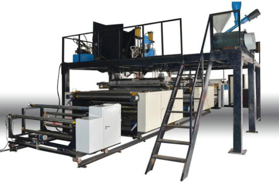 本機(jī)主要由擠出機(jī)、模頭、真空負(fù)壓系統(tǒng)、氣泡成型模具、牽引機(jī)構(gòu)、 輾平機(jī)構(gòu)、收卷機(jī)構(gòu)、電氣控制系統(tǒng)等主要部件組成,實(shí)現(xiàn)原料從加料口加入,直至成品收卷自動控制的機(jī)電一體化產(chǎn)品。